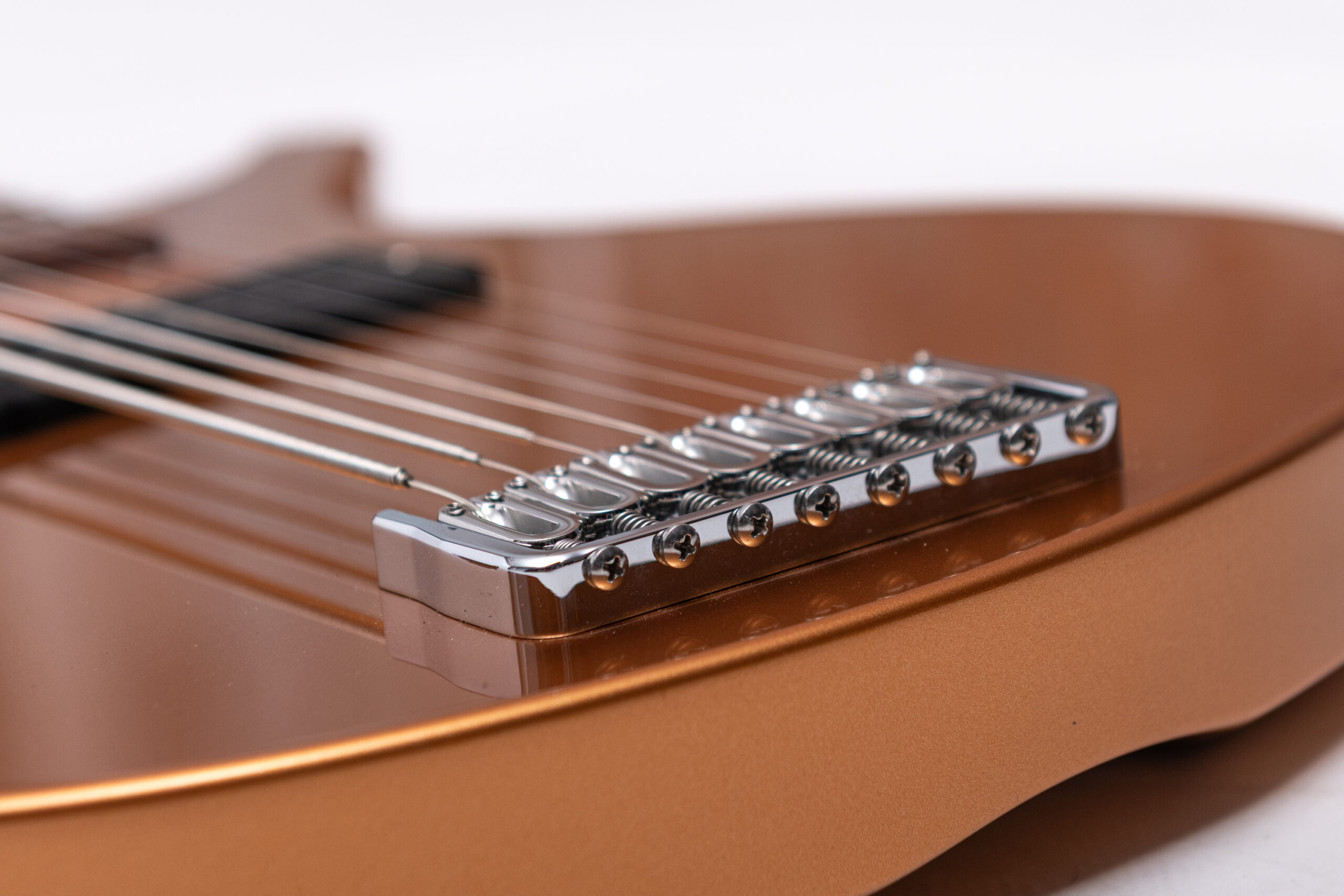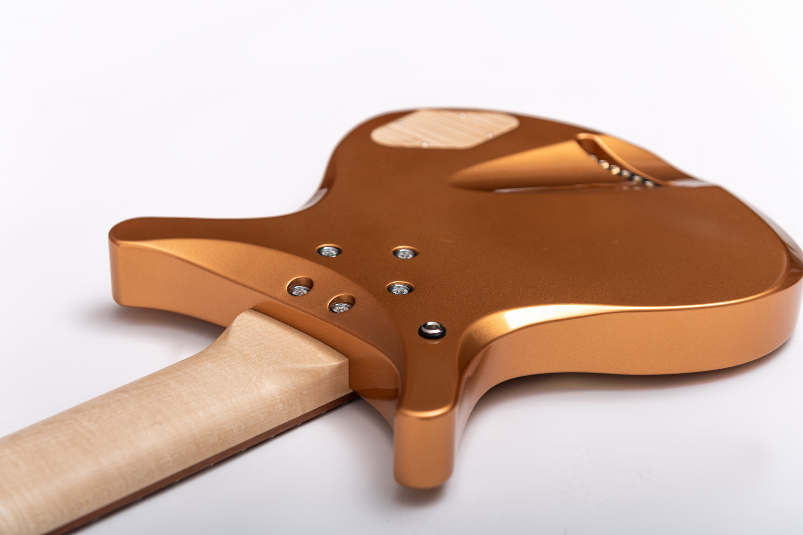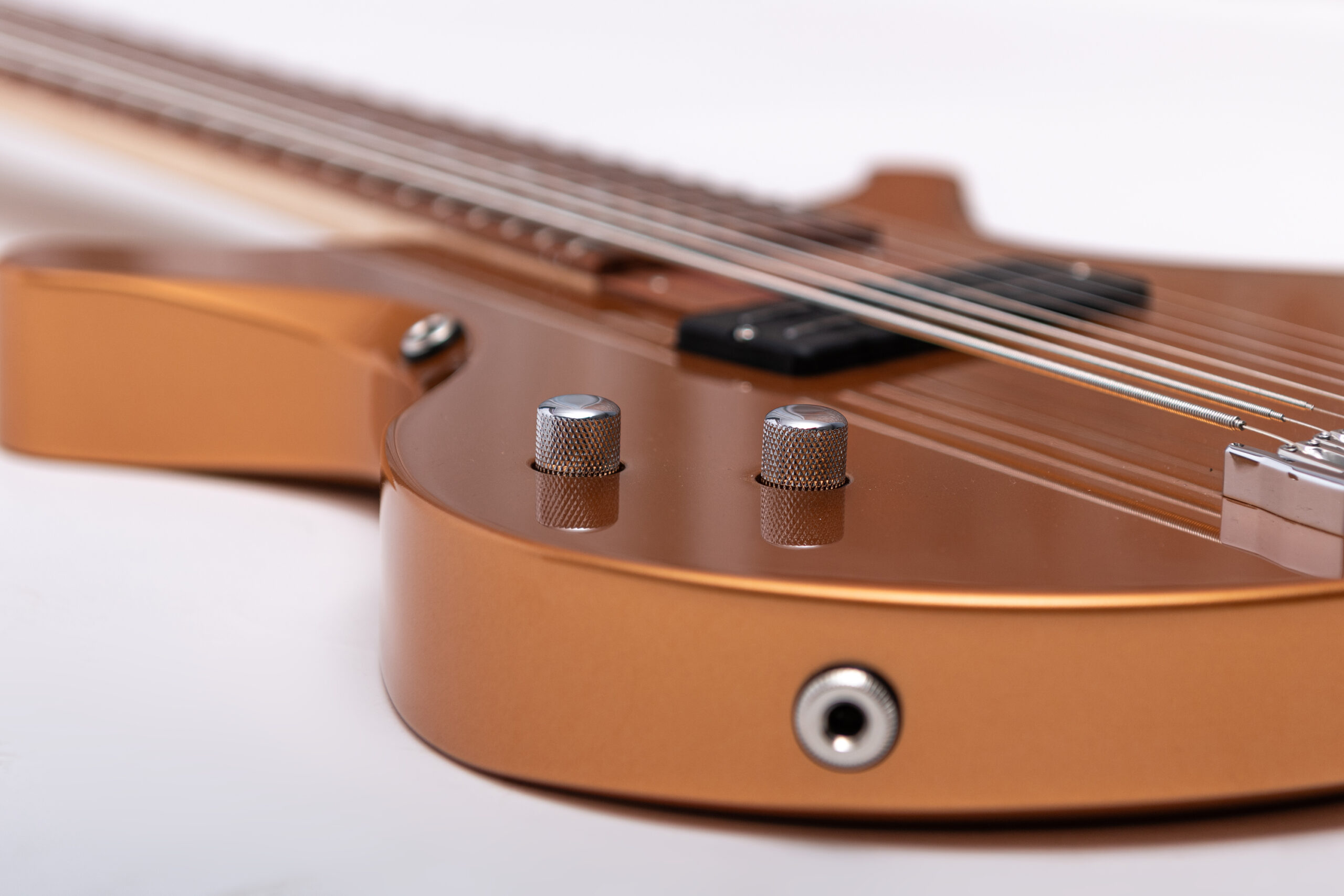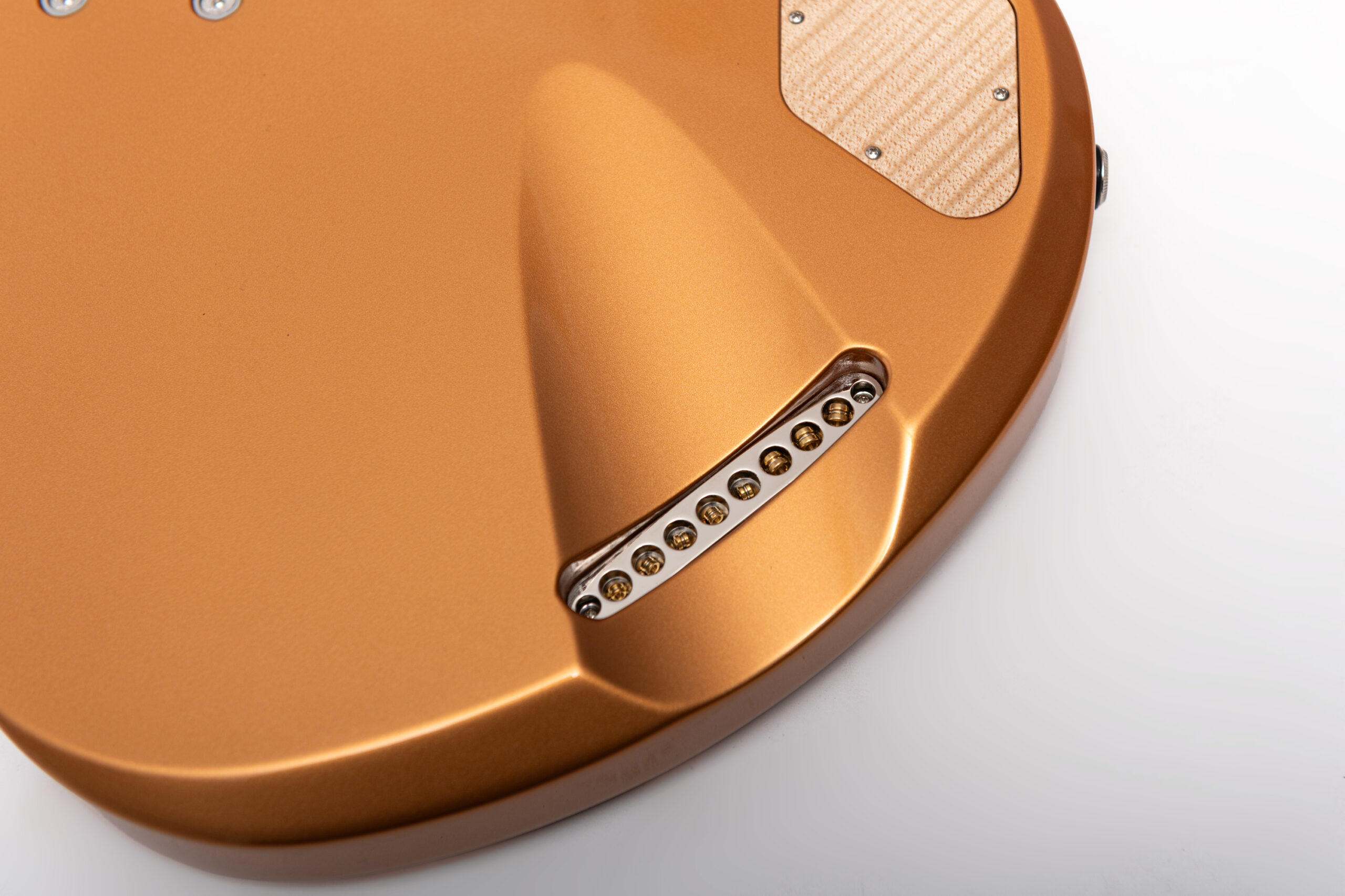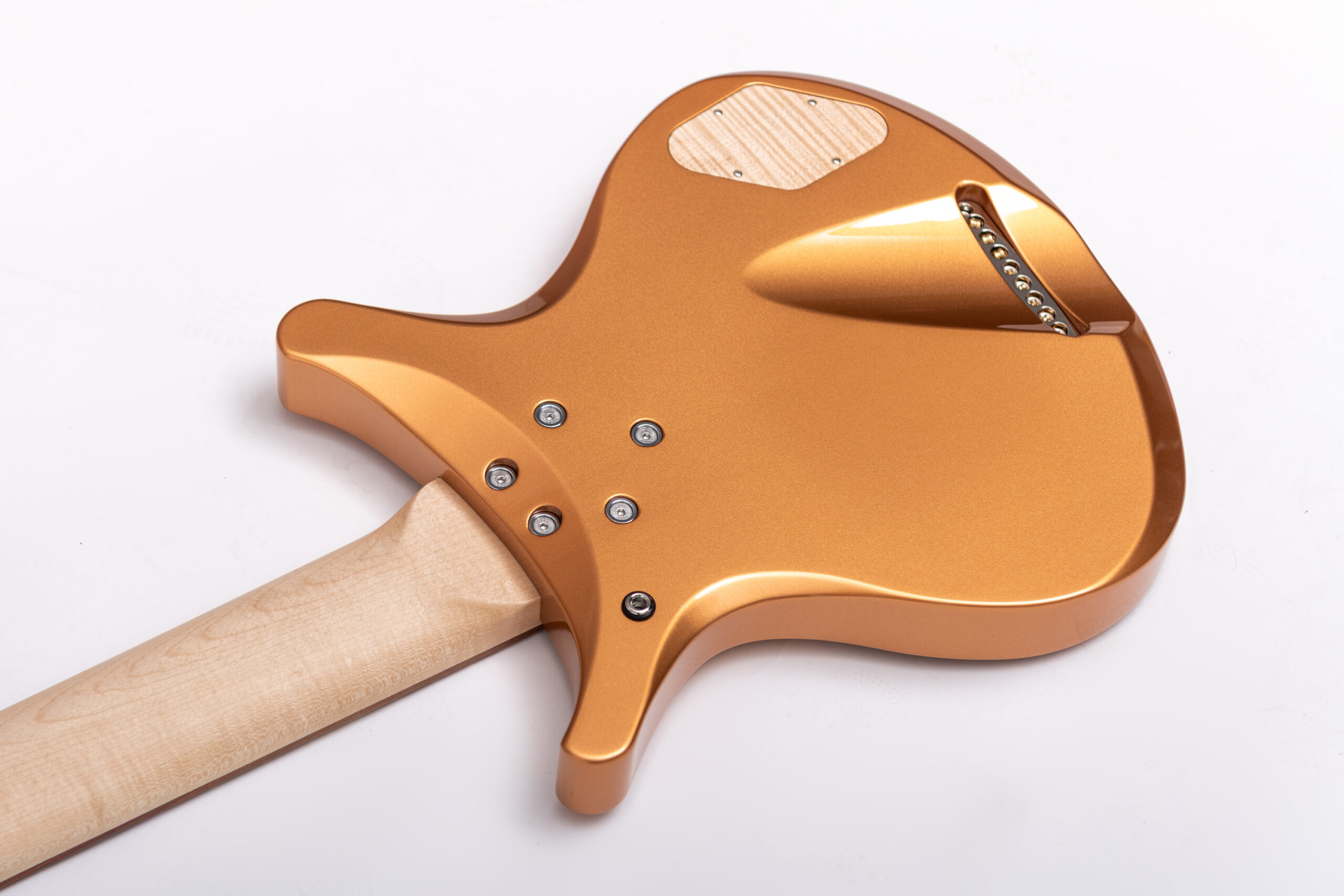 • basswood body in firemist gold metallic • true oil neck • maple neck • plumwood fretboard • chrome hardware • Jim Dunlop Straplok system • 1x Nova Custom 8- string pickup • volume, tone • Tuning: Bb F C G D A C D