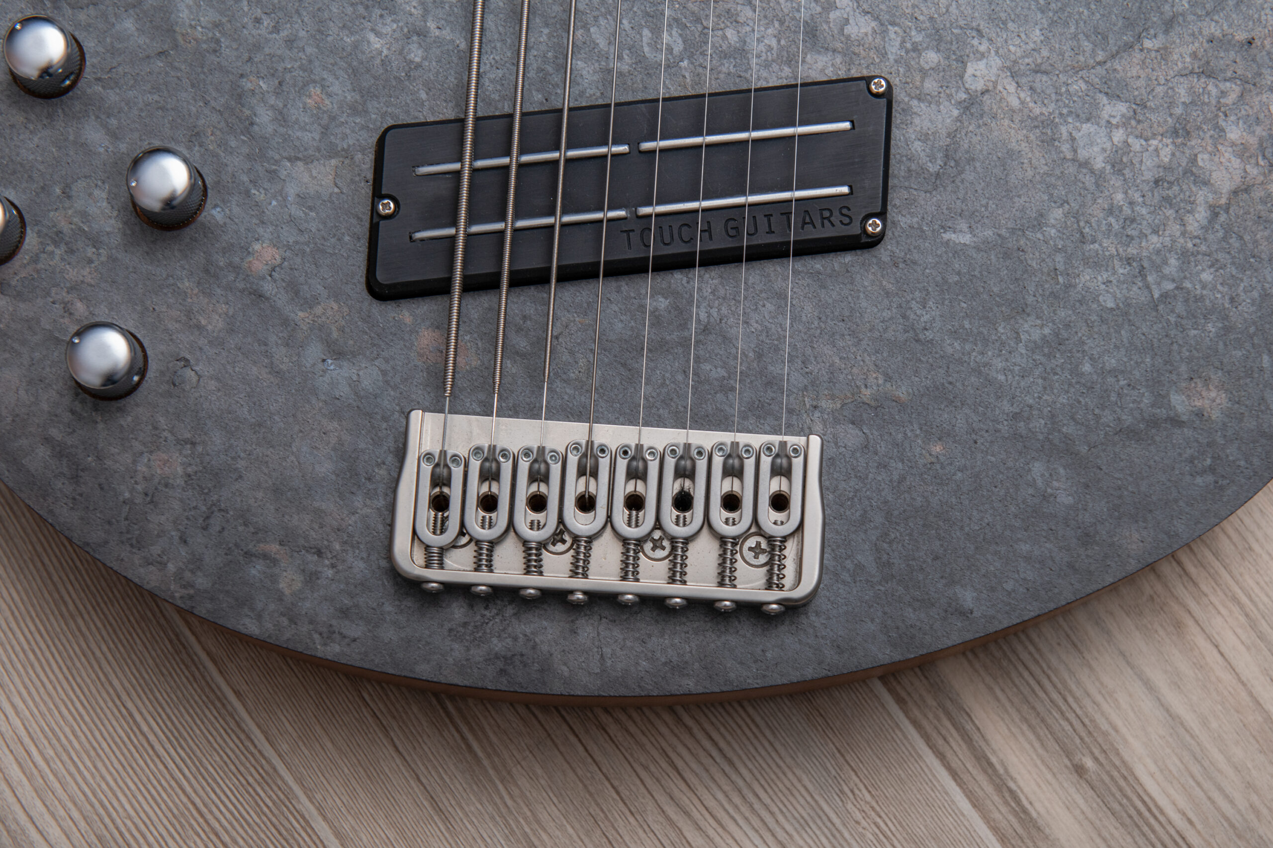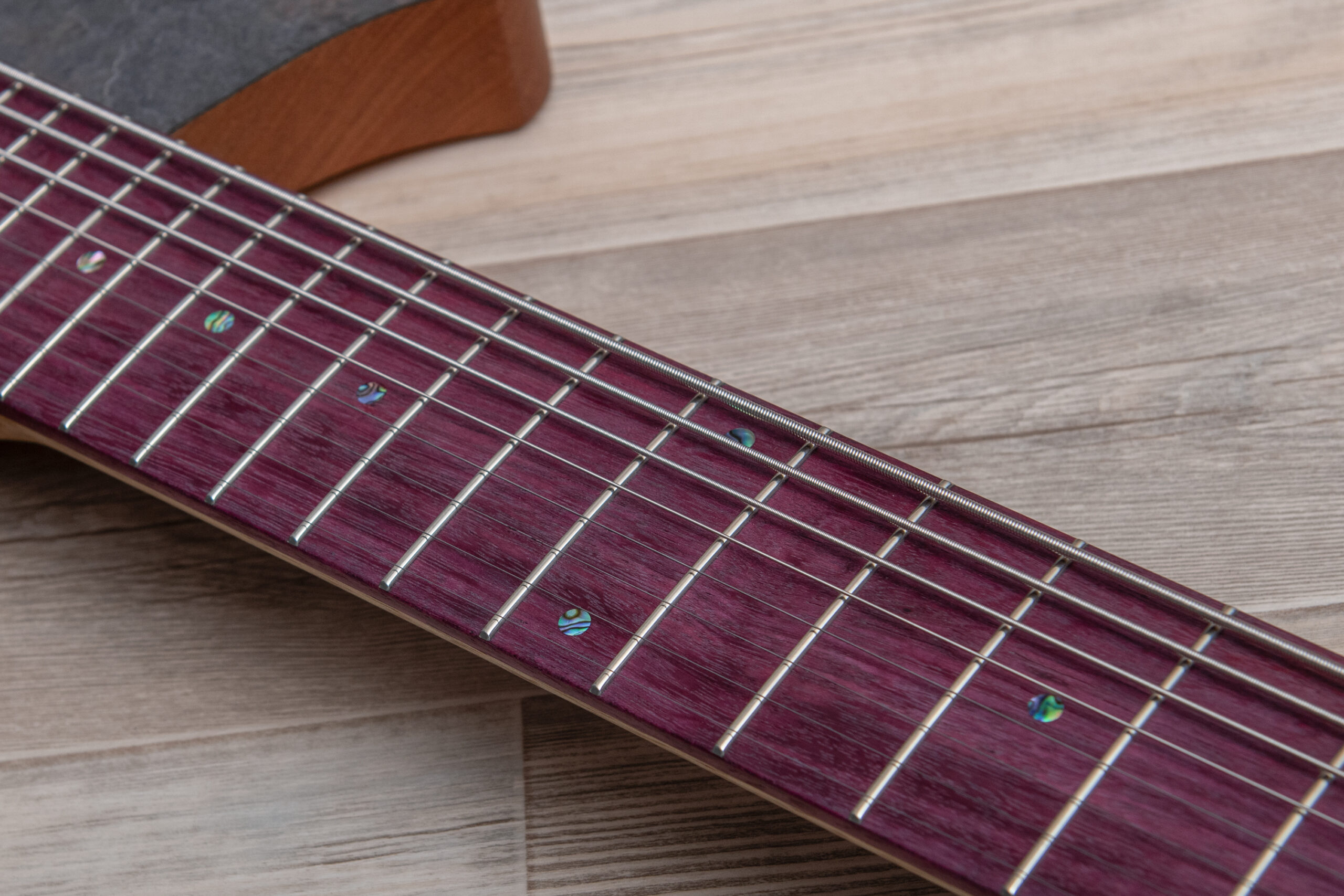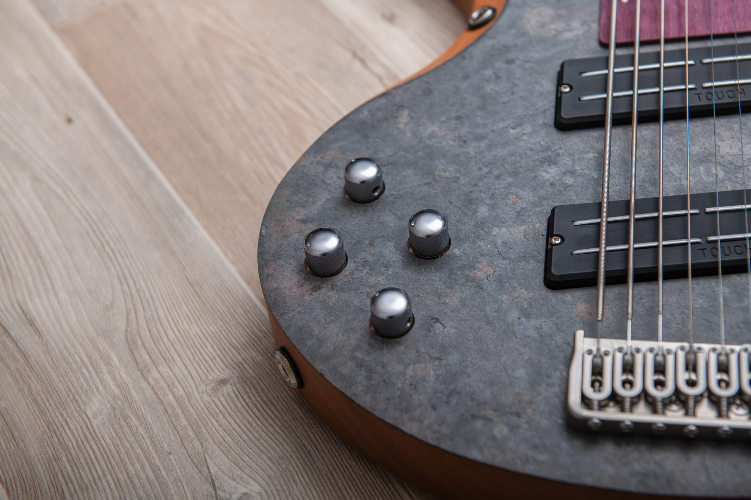 This Touch Guitars U8 Deluxe features a real stone top which is ultra-thin, keeping the instrument lightweight while adding a unique look and feel. Combined with a mahogany body, a 3-piece korina/purple heart/korina neck, and purple heart fretboard, it delivers clarity, warmth, and stability.