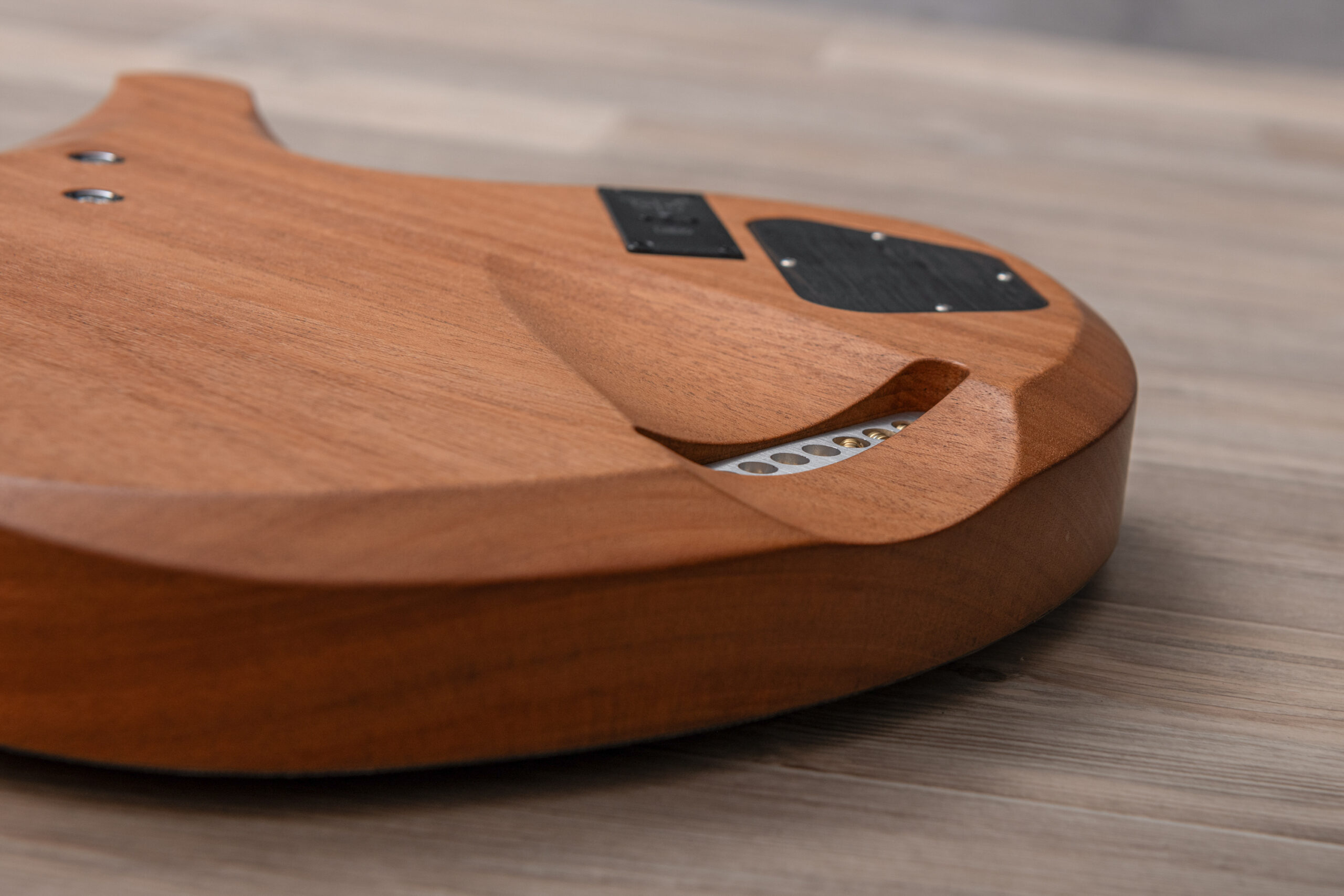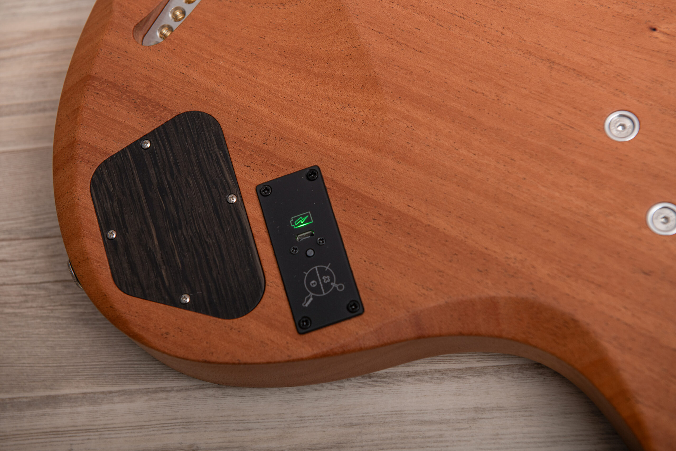 Together with Till from Nova Pickups and Joris Henke, we implemented a new filter preamp system inspired by boutique bass electronics. The slanted full-range pickups are highly transparent, with minimal coloration. Each pickup has its own filter with a push-push +8 dB boost at the selected frequency, and you can seamlessly blend between them.